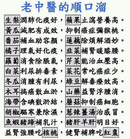 老中醫的順口溜