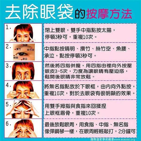 2.中指點按睛明、攢竹、絲竹空、魚腰、承泣,點按停頓3秒可。